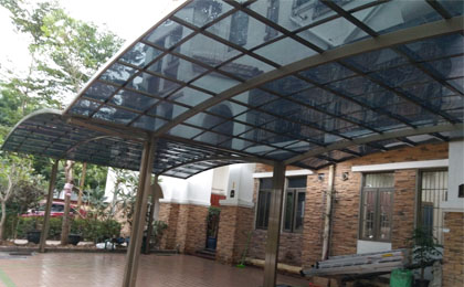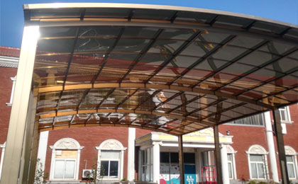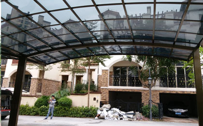 頂棚采用進(jìn)口聚碳酸酯板,抗沖擊是玻璃的數(shù)百倍,有效防止高空墜物