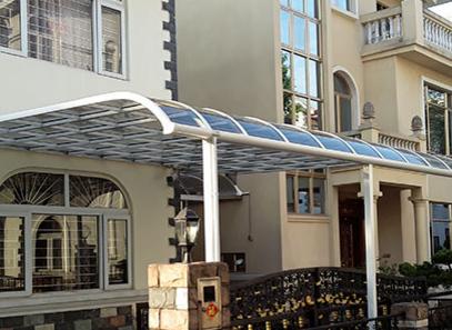 鋁合金車棚的主體骨架全部選用鈦鋁合金,表面處理選用靜電粉末噴涂工藝,耐腐蝕。棚頂材料選用進口的聚碳酸酯板(又稱PC耐力板、PC陽光板),可以吸收陽光中的紫外線。十分合適保護各類車、藝術品和貴重物品,免受紫外線傷害。