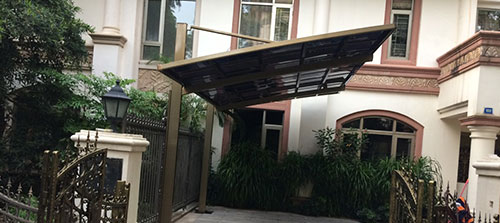 頂棚采用進口聚碳酸酯板,抗沖擊比玻璃強,有效防止高空墜物