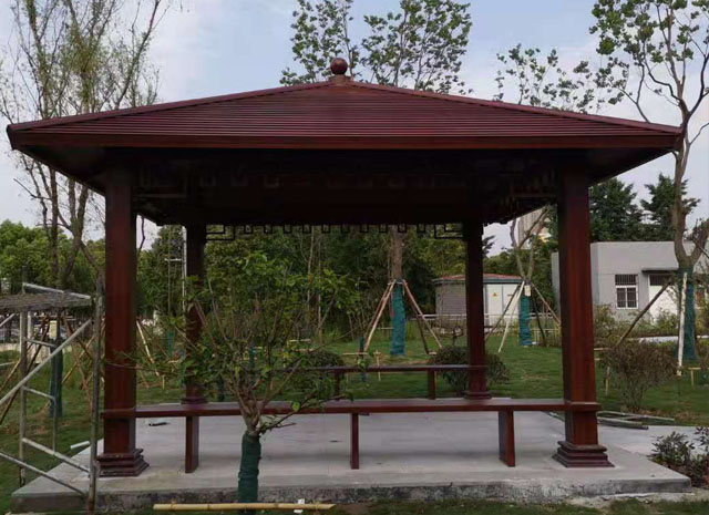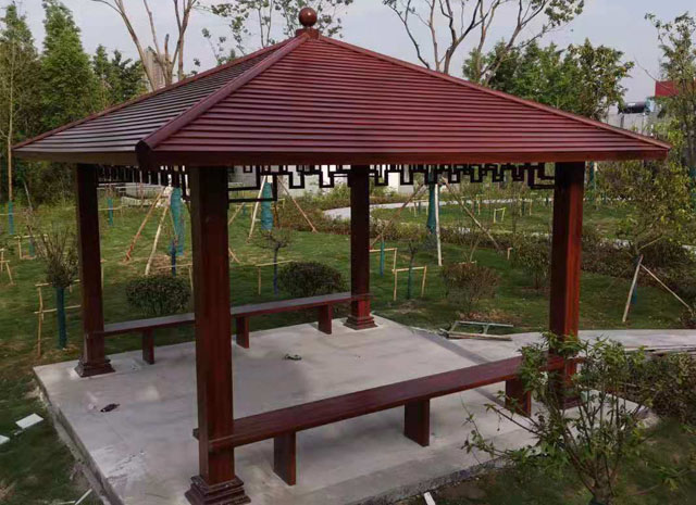 近些年來,鋁制涼亭受到了很多人的青睞,因?yàn)殇X制涼亭材質(zhì)硬不易老化,后期基本不用維護(hù),其外觀經(jīng)過木紋處理轉(zhuǎn)印后,質(zhì)地顏色都和木頭很相似,從遠(yuǎn)處更是看不出來區(qū)別,經(jīng)風(fēng)摧日曬也不易掉色、老化、干裂,而這些在木制涼亭中都無法避免。而且鋁制涼亭建造后牢固性也很好!