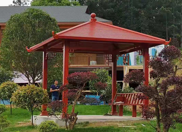 涼亭,傳統(tǒng)結(jié)構(gòu)單體建筑之一。因?yàn)樵煨洼p巧,選材不拘,布設(shè)靈活而被廣泛應(yīng)用在園林建筑之中。是人們憑借一定材料建造出來的,而材料的特性,也必然會(huì)對(duì)建筑的造型風(fēng)格產(chǎn)生影響。所以,涼亭的造型藝術(shù),也在一定程度上取決于所選用的材料。由于各種材料性能的差異,因此,不同材料建造的涼亭,就各自帶有非常顯著的不同特色。