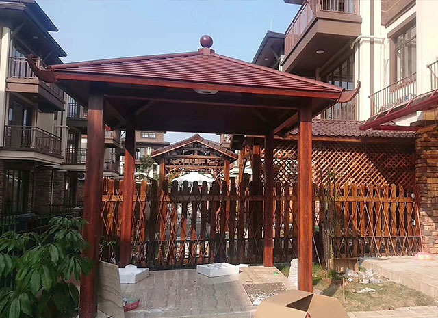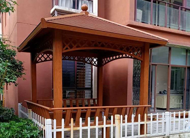 近些年來,鋁制涼亭受到了很多人的青睞,因?yàn)殇X制涼亭材質(zhì)硬不易老化,后期基本不用維護(hù),其外觀經(jīng)過木紋處理轉(zhuǎn)印后,質(zhì)地顏色都和木頭很相似,從遠(yuǎn)處更是看不出來區(qū)別,經(jīng)風(fēng)摧日曬也不易掉色、老化、干裂,而這些在木制涼亭中都無法避免。而且鋁制涼亭建造后牢固性也很好!