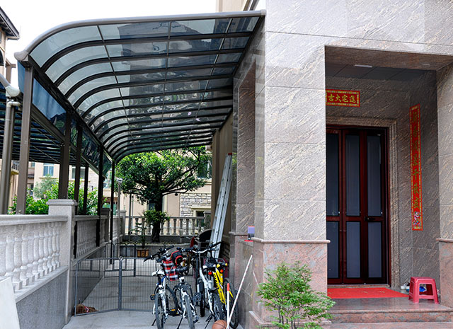 頂棚采用進(jìn)口聚碳酸酯板,抗沖擊是玻璃的數(shù)百倍,有效防止高空墜物