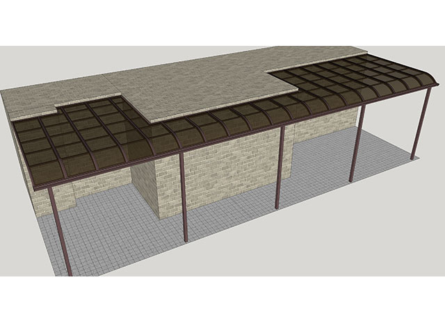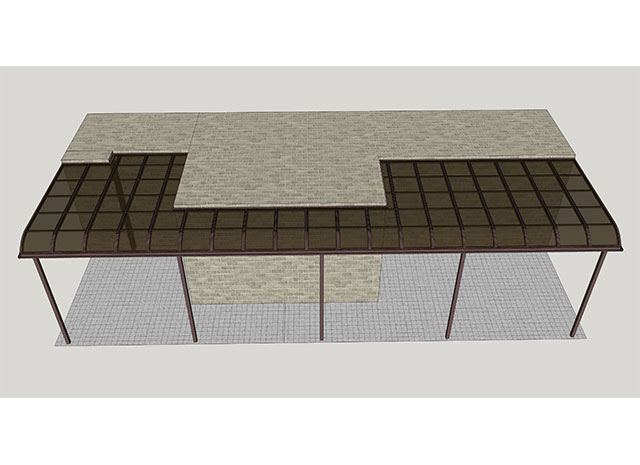 頂棚采用進(jìn)口聚碳酸酯板,抗沖擊是玻璃的數(shù)百倍,有效防止高空墜物