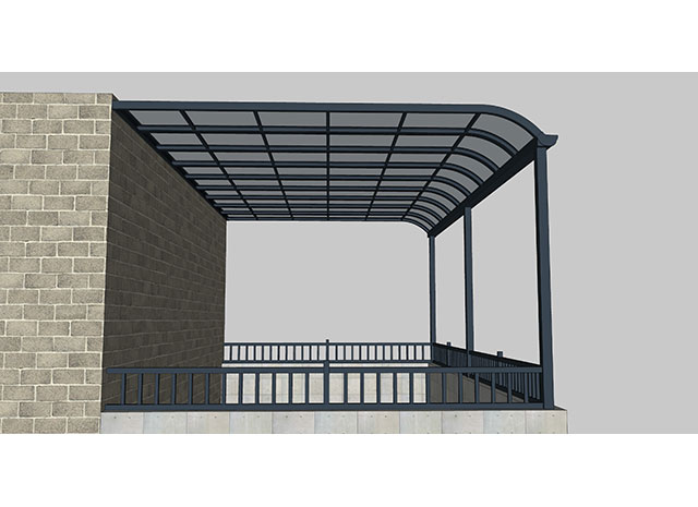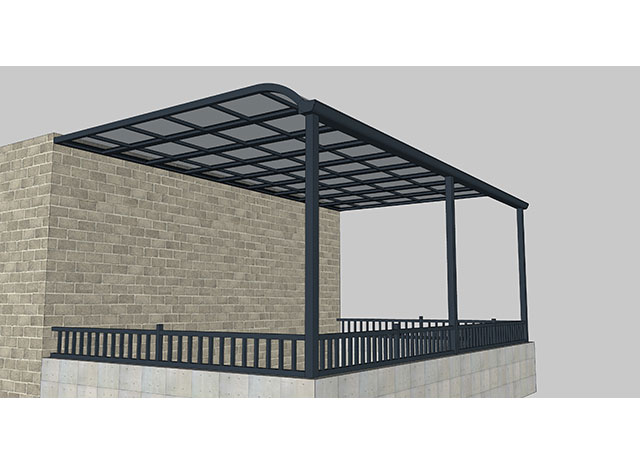 頂棚采用進(jìn)口聚碳酸酯板,抗沖擊是玻璃的數(shù)百倍,有效防止高空墜物