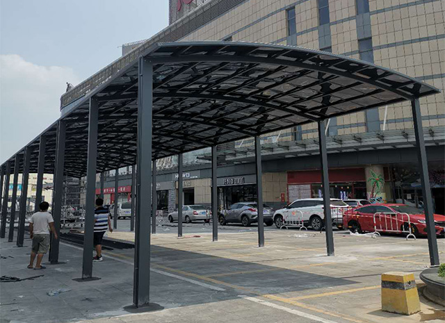 頂棚采用進(jìn)口聚碳酸酯板,抗沖擊是玻璃的數(shù)百倍,有效防止高空墜物