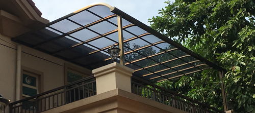 頂棚采用進(jìn)口聚碳酸酯板,抗沖擊是玻璃的數(shù)百倍,有效防止高空墜物