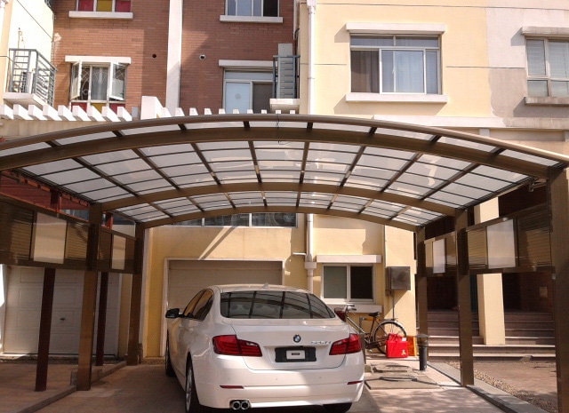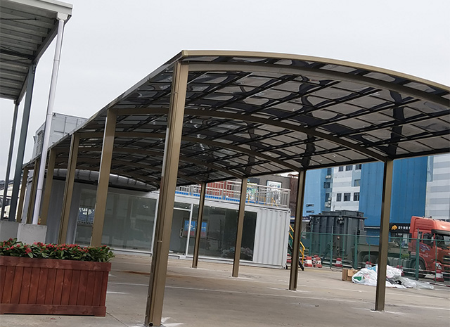 頂棚采用進(jìn)口聚碳酸酯板,抗沖擊是玻璃的數(shù)百倍,有效防止高空墜物