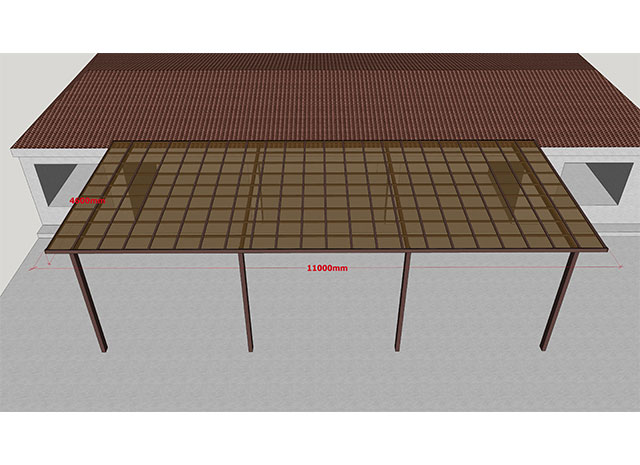 頂棚采用進(jìn)口聚碳酸酯板,抗沖擊是玻璃的數(shù)百倍,有效防止高空墜物