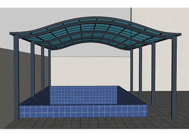 頂棚采用進(jìn)口聚碳酸酯板,抗沖擊是玻璃的數(shù)百倍,有效防止高空墜物