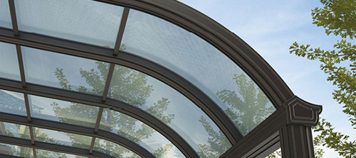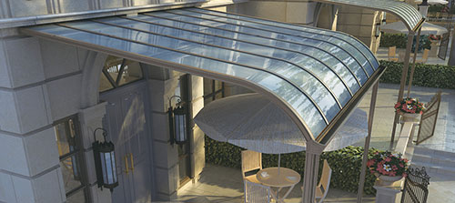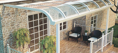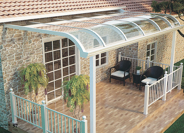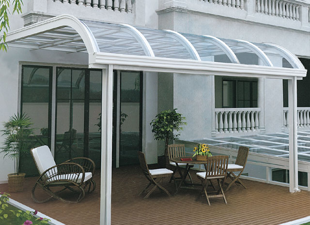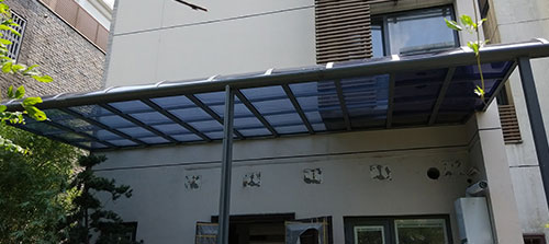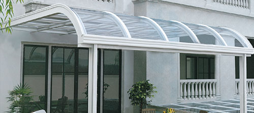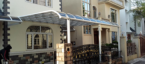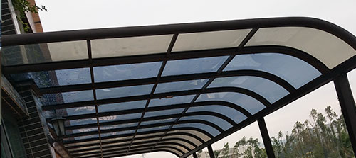 頂棚采用進(jìn)口聚碳酸酯板,抗沖擊比玻璃強(qiáng),有效防止高空墜物