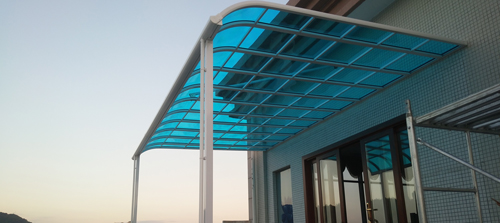 頂棚采用進口聚碳酸酯板,抗沖擊是玻璃的數(shù)百倍,有效防止高空墜物