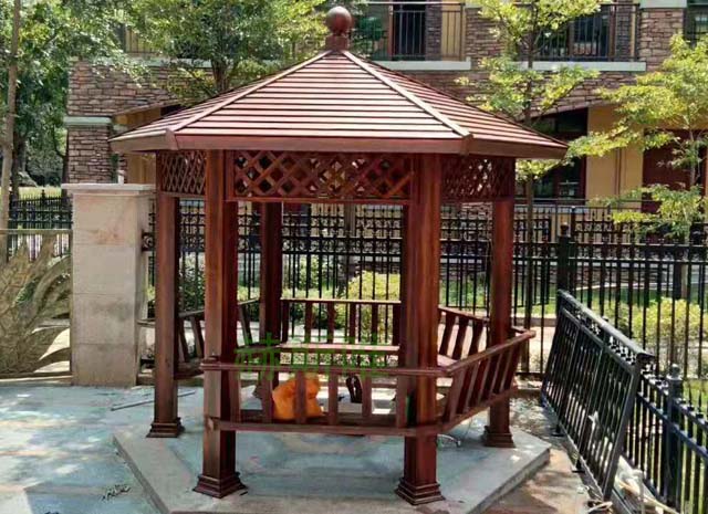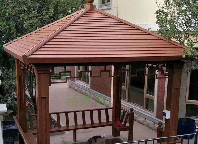 近些年來(lái),鋁制涼亭受到了很多人的青睞,因?yàn)殇X制涼亭材質(zhì)硬不易老化,后期基本不用維護(hù),其外觀經(jīng)過(guò)木紋處理轉(zhuǎn)印后,質(zhì)地顏色都和木頭很相似,從遠(yuǎn)處更是看不出來(lái)區(qū)別,經(jīng)風(fēng)摧日曬也不易掉色、老化、干裂,而這些在木制涼亭中都無(wú)法避免。而且鋁制涼亭建造后牢固性也很好!
