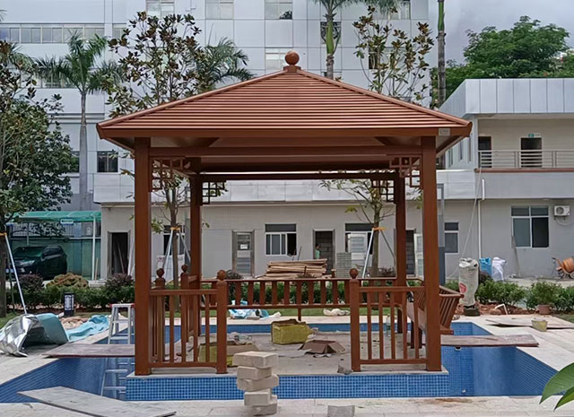 近些年來,鋁制涼亭受到了很多人的青睞,因?yàn)殇X制涼亭材質(zhì)硬不易老化,后期基本不用維護(hù),其外觀經(jīng)過木紋處理轉(zhuǎn)印后,質(zhì)地顏色都和木頭很相似,從遠(yuǎn)處更是看不出來區(qū)別,經(jīng)風(fēng)摧日曬也不易掉色、老化、干裂,而這些在木制涼亭中都無法避免。而且鋁制涼亭建造后牢固性也很好!
