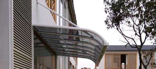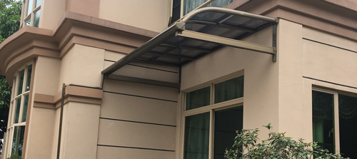 頂棚采用進口聚碳酸酯板,抗沖擊是玻璃的數(shù)百倍,有效防止高空墜物