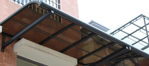 頂棚采用進口聚碳酸酯板,抗沖擊是玻璃的數(shù)百倍,有效防止高空墜物