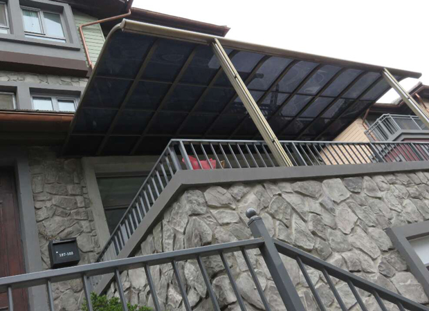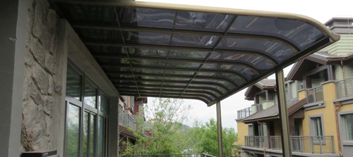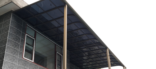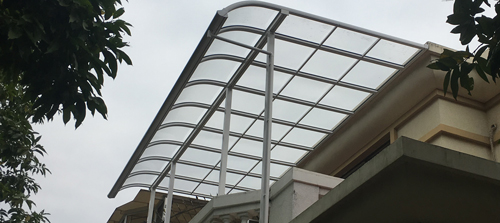 頂棚采用進(jìn)口聚碳酸酯板,抗沖擊是玻璃的數(shù)百倍,有效防止高空墜物