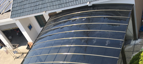 頂棚采用進(jìn)口聚碳酸酯板,抗沖擊是玻璃的數(shù)百倍,有效防止高空墜物
